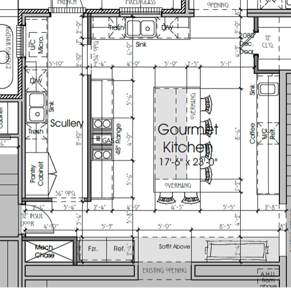 In this kitchen, we started with reworking the space to accommodate a large, busy family. They loved our idea of a back kitchen to provide ample storage and the flexibility to entertain with a prep area out of sight to guests. When they aren’t entertaining, the 6-seater island is the perfect spot for the kids to watch their dad show off his culinary skills.