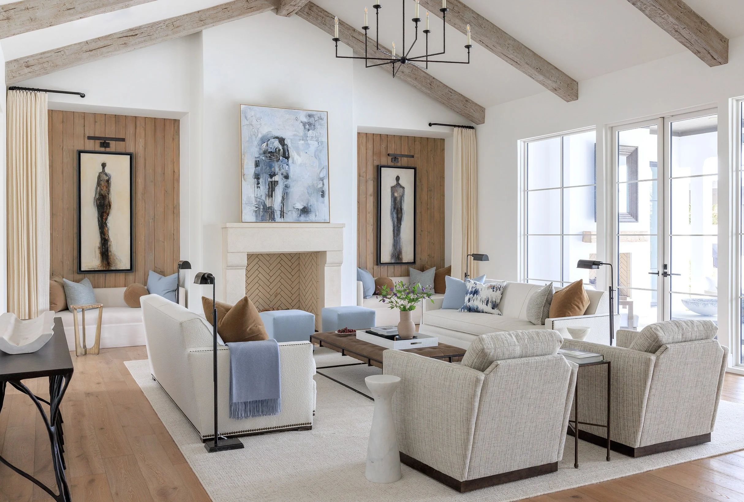 Portfolio: In our French Country Inspired project, strategic furniture placement emphasized the home's architectural features, enhancing both aesthetics and usability.